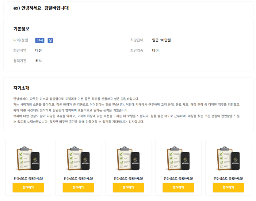 이에 따라 구직정보(이력서) 등록 시, 전화번호나 메신저 ID가 즉시 노출되지 않는 방식으로 운영되고 있습니다.